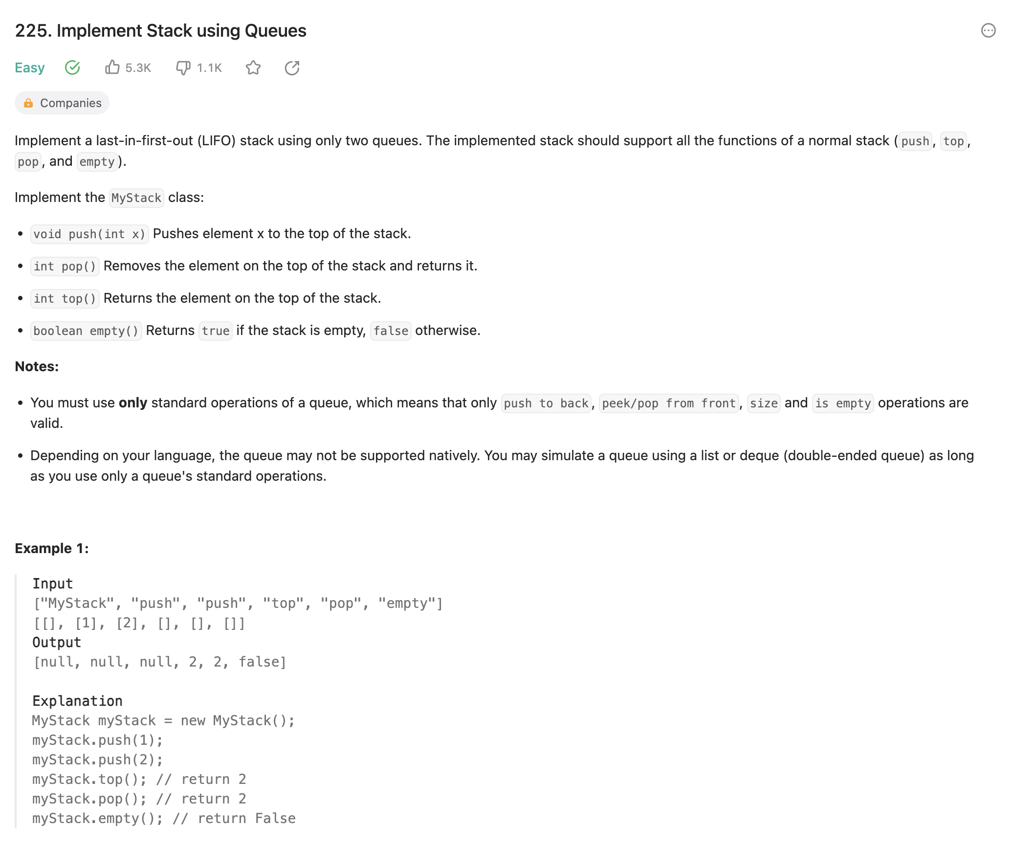 https://leetcode.com/problems/implement-stack-using-queues/description/