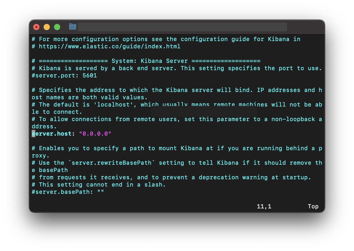 $ sudo vi /etc/kibana/kibana.yml