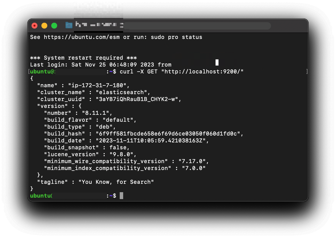 $ sudo apt-get install elasticsearch