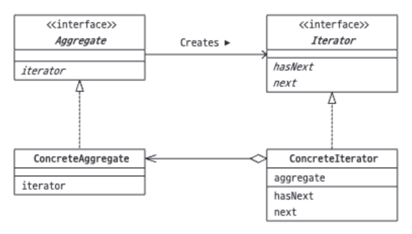 - `ConcreteAggregate`(๊ตฌ์ฒด์ ์ธ ์งํฉ์ฒด)