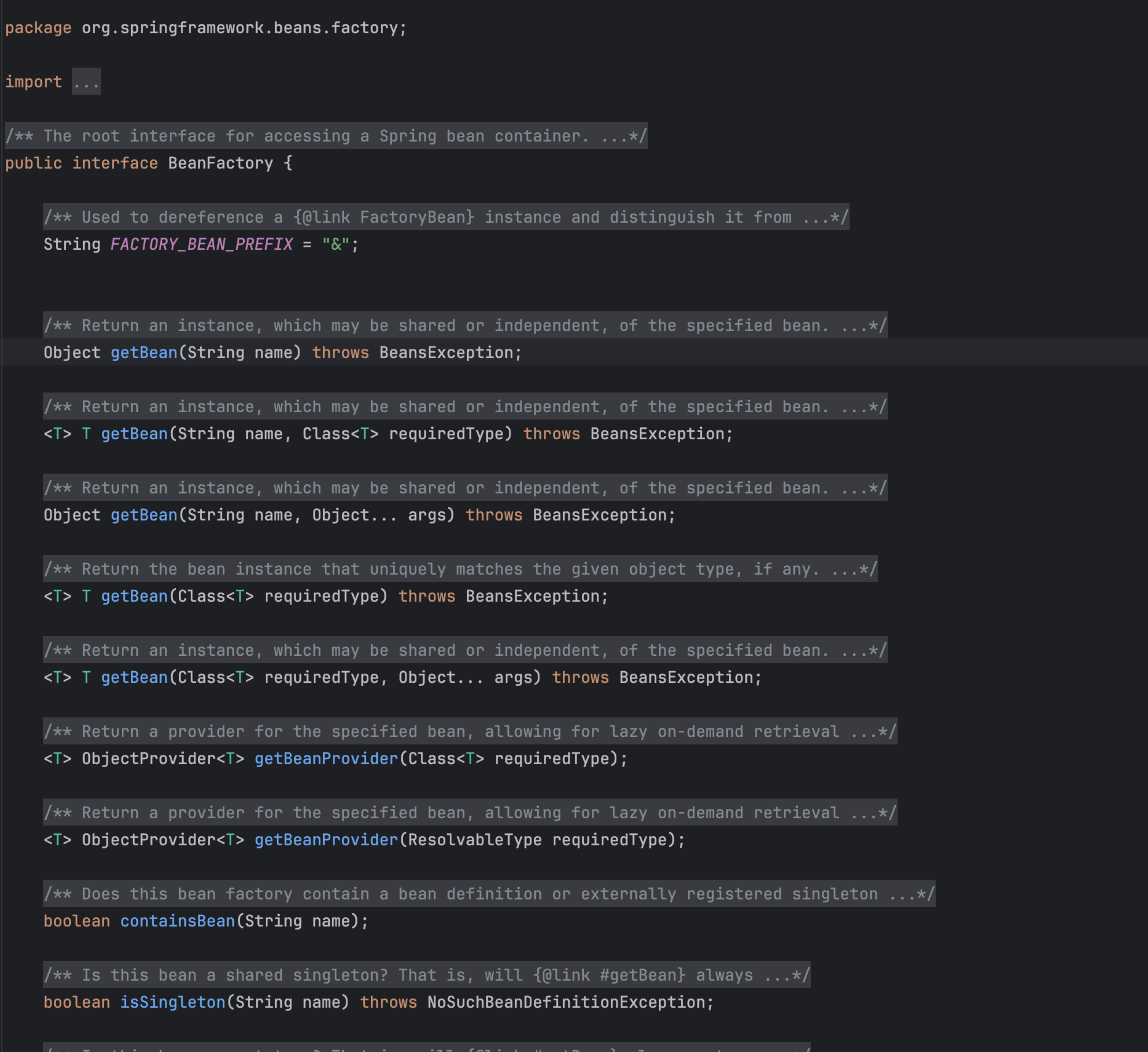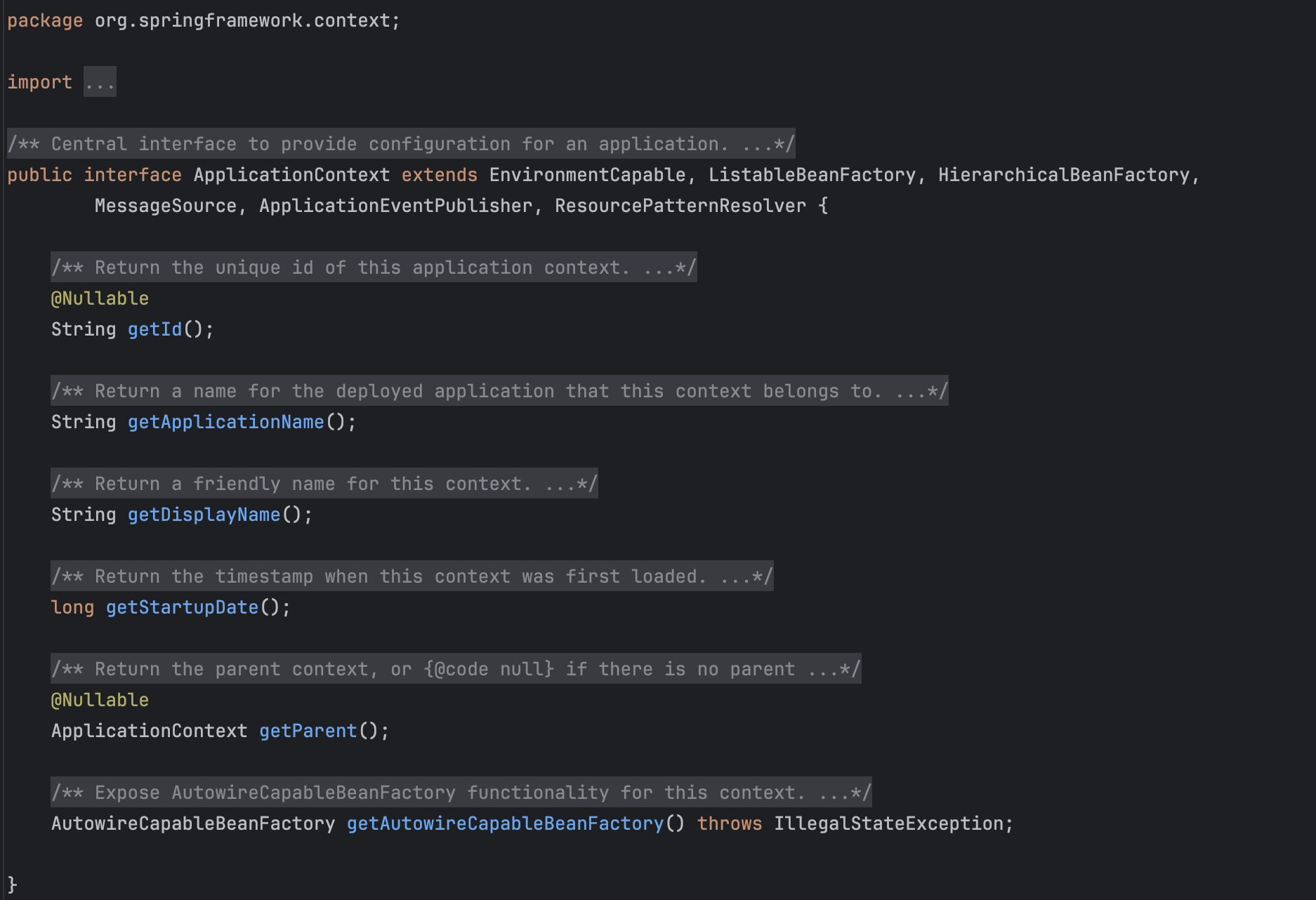 - ListableBeanFactory: ๋น ํ์ ๋ฐ ์กฐํ ๊ธฐ๋ฅ