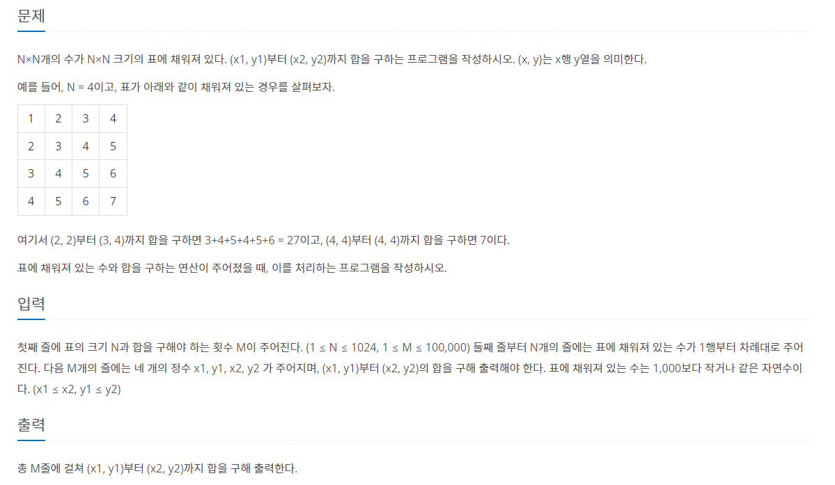 https://www.acmicpc.net/problem/11660