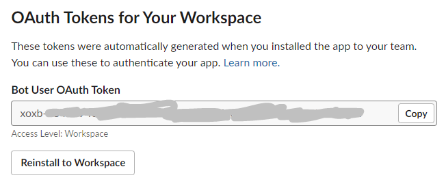 token: 'xoxb-๋ฐ๊ธ๋ฐ์ ํ ํฐ'