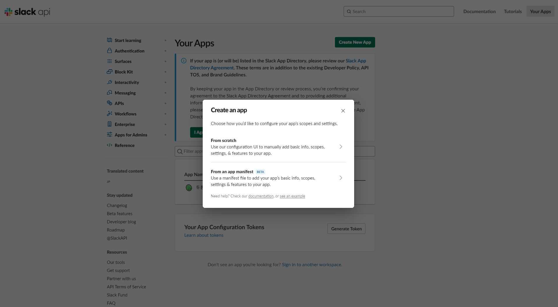 https://api.slack.com/ ์์ Slack Bot ๋ง๋ค๊ธฐ