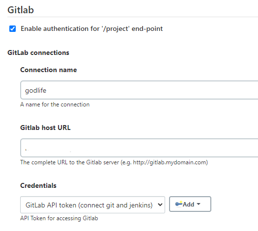 - Gitlab host URL: ๊น๋ฉ ์๋ฒ์ ํธ์คํธ URL(e.g. http://gitlab.mydomain.com)
