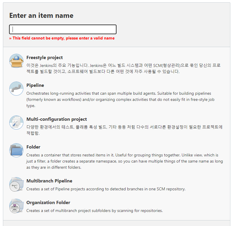 Jenkins Dashboard > ์๋ก์ด Item์ ํด๋ฆญํด ์์ดํ ์ ๋ง๋ ๋ค.๊ทธ ํ, Freestyle project๋ฅผ ์ ํํ๊ณ ํ๋ก์ ํธ ์ด๋ฆ์ ๋ฑ๋กํ๋ค.
