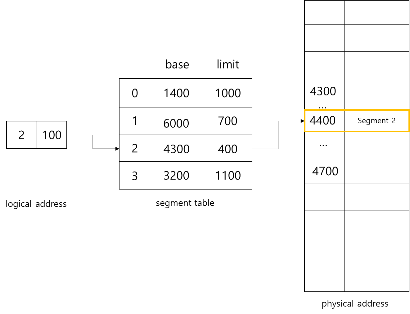 - process๊ฐ ํ ๋น๋ฐ์ ๋ฉ๋ชจ๋ฆฌ ๊ณต๊ฐ์ ๋ ผ๋ฆฌ์ ์๋ฏธ ๋จ์(segment)๋ก ๋๋์ด, ์ฐ์๋์ง ์๋ ๋ฌผ๋ฆฌ ๋ฉ๋ชจ๋ฆฌ ๊ณต๊ฐ์ ํ ๋น๋ ์ ์๋๋ก ํ๋ ๋ฉ๋ชจ๋ฆฌ ๊ด๋ฆฌ ๊ธฐ๋ฒ